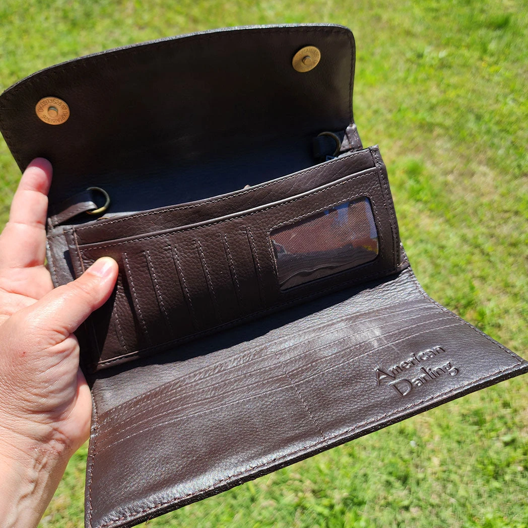 This great sunflower wallet can be used so many ways and you can carry it as a wallet or a crossbody as it comes with a removable strap. Lots of compartments add so much room in this beautiful leather wallet.