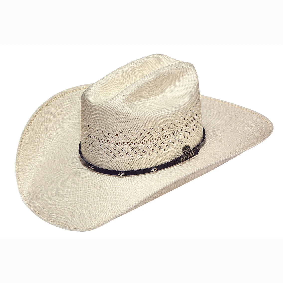 This Ariat straw hat has a rugged and durable design, handcrafted from premium materials. The hat band brings the western fashion out with its sliver diamond shaped conchos.