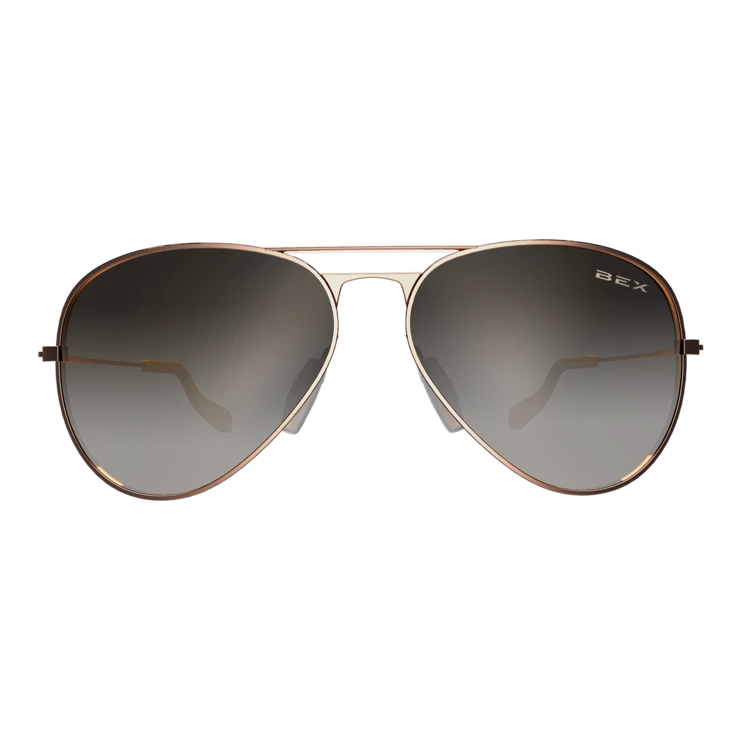 - Len’s Color: Shiny rose gold frame with a BEX vibrant brown fader lens.