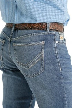 This medium stonewash, slim fit IAN features hand sanding, whiskers, chevrons and knee starbursts on a lightweight performance denim. Heavy embroidery in khaki and cream pair perfectly highlighting the back pockets.
