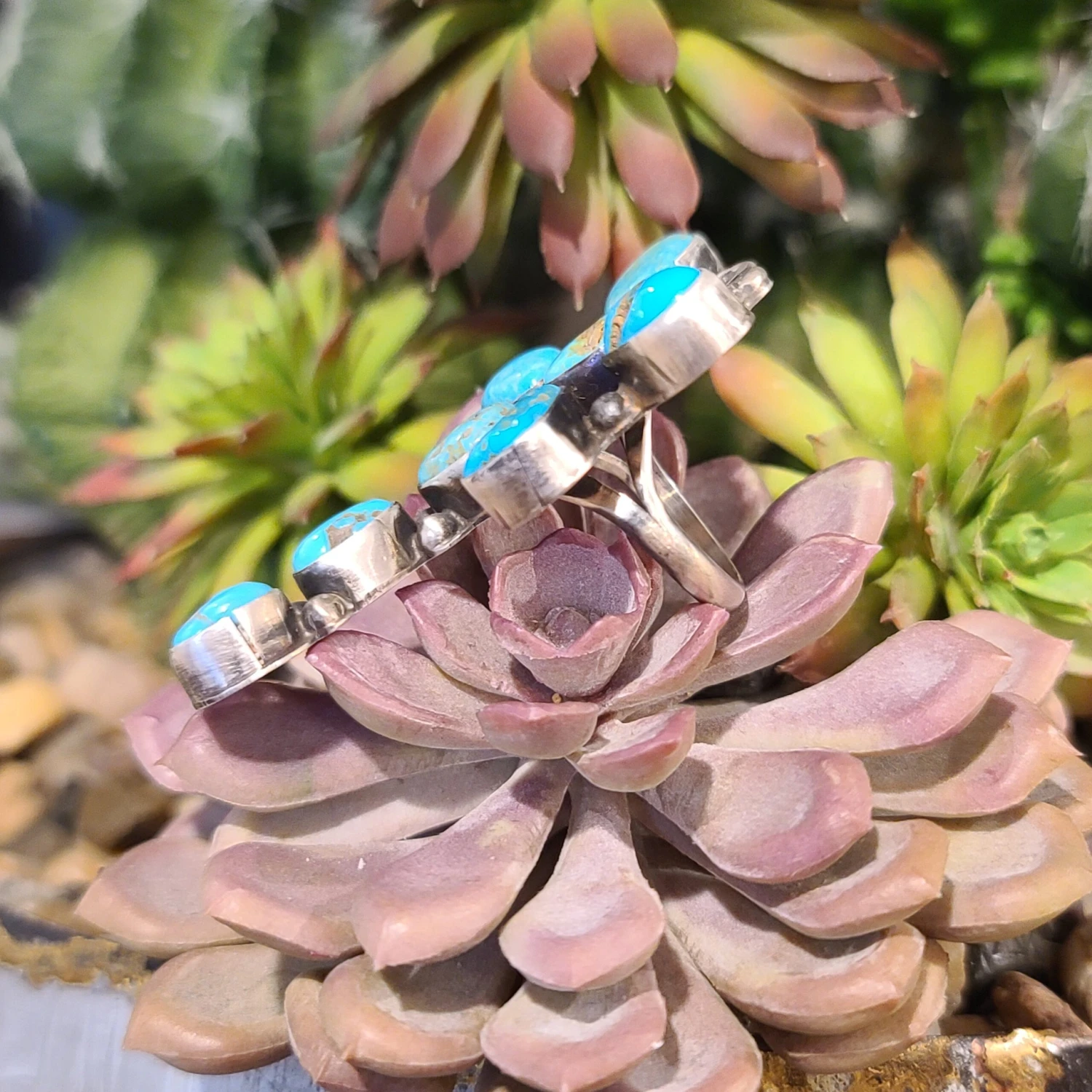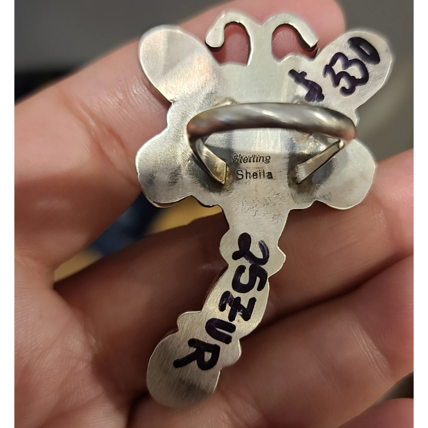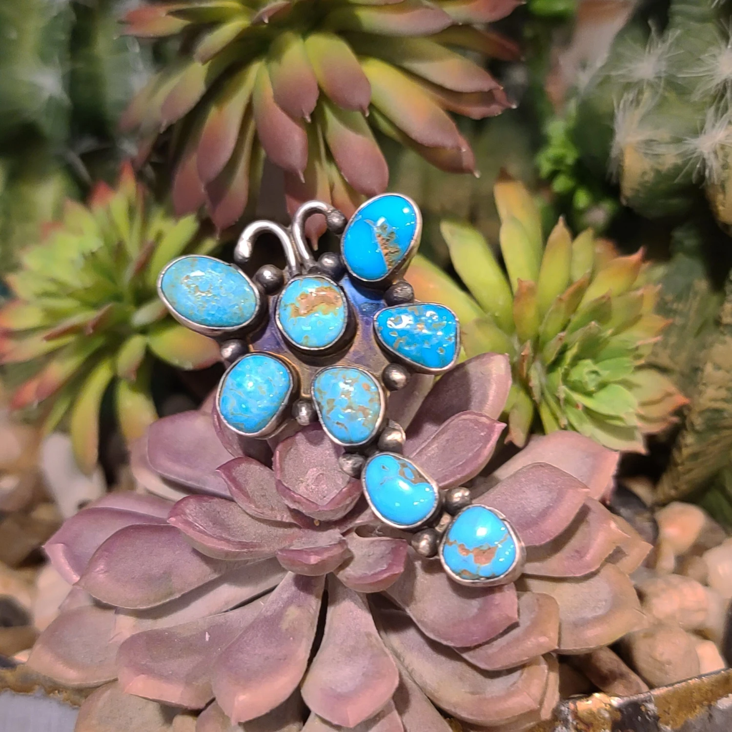 What a stunning dragonfly ring. The turquoise stones and size of this piece simply stand out. This ring is just over 2 inches in length.