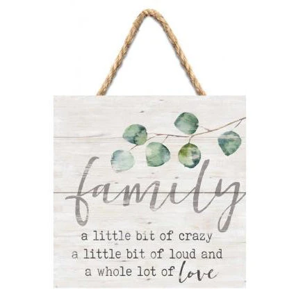 This “Family” sign is pretty much perfect for any family…who doesn’t have a little bit of crazy and loud and a whole lot of love in their family?!?! This sign is constructed of pine slats along with Jute string for hanging. Give any home a touch of rustic warmth and love with this sign.