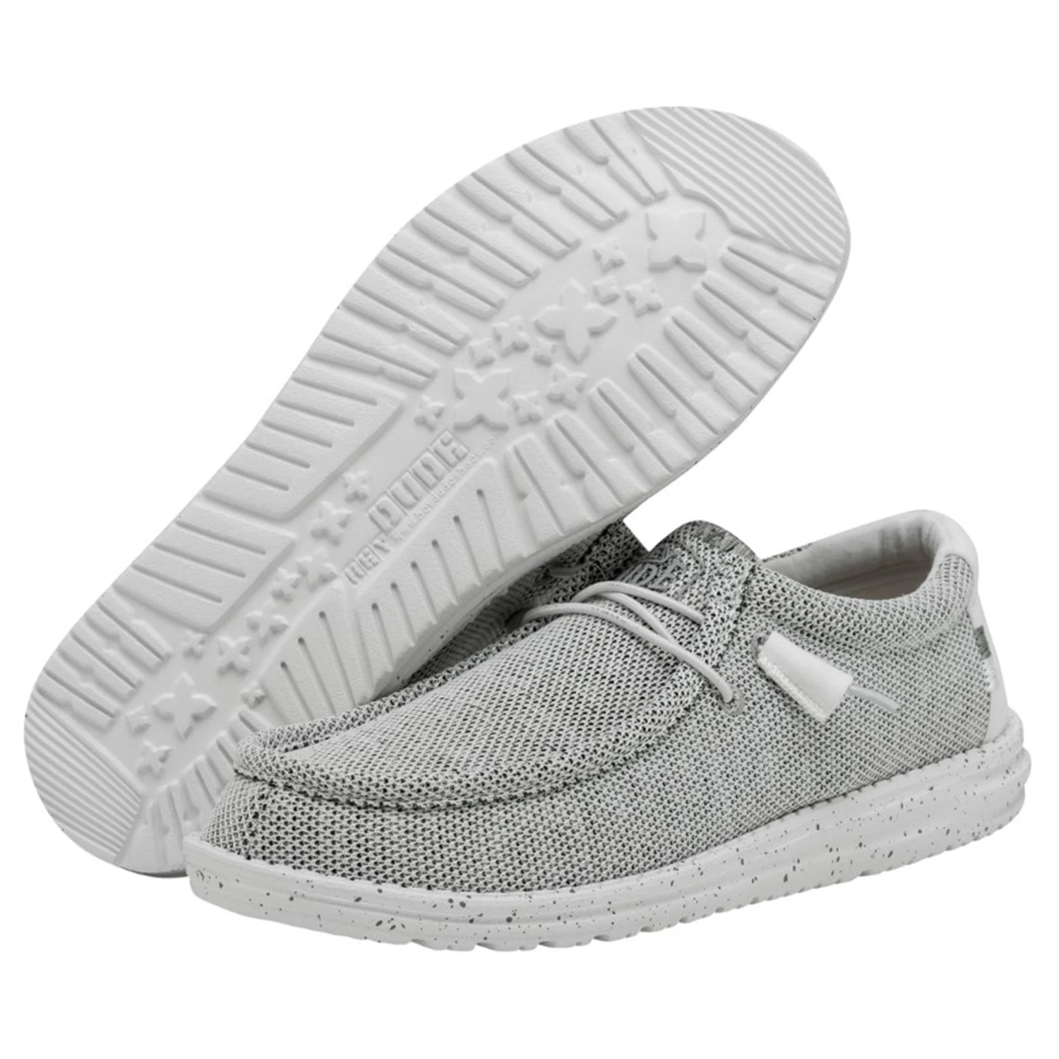These men’s shoes from Hey Dude are stone white with a white speckled outsole. Hey Dude shoes are comfortable and very light weight!