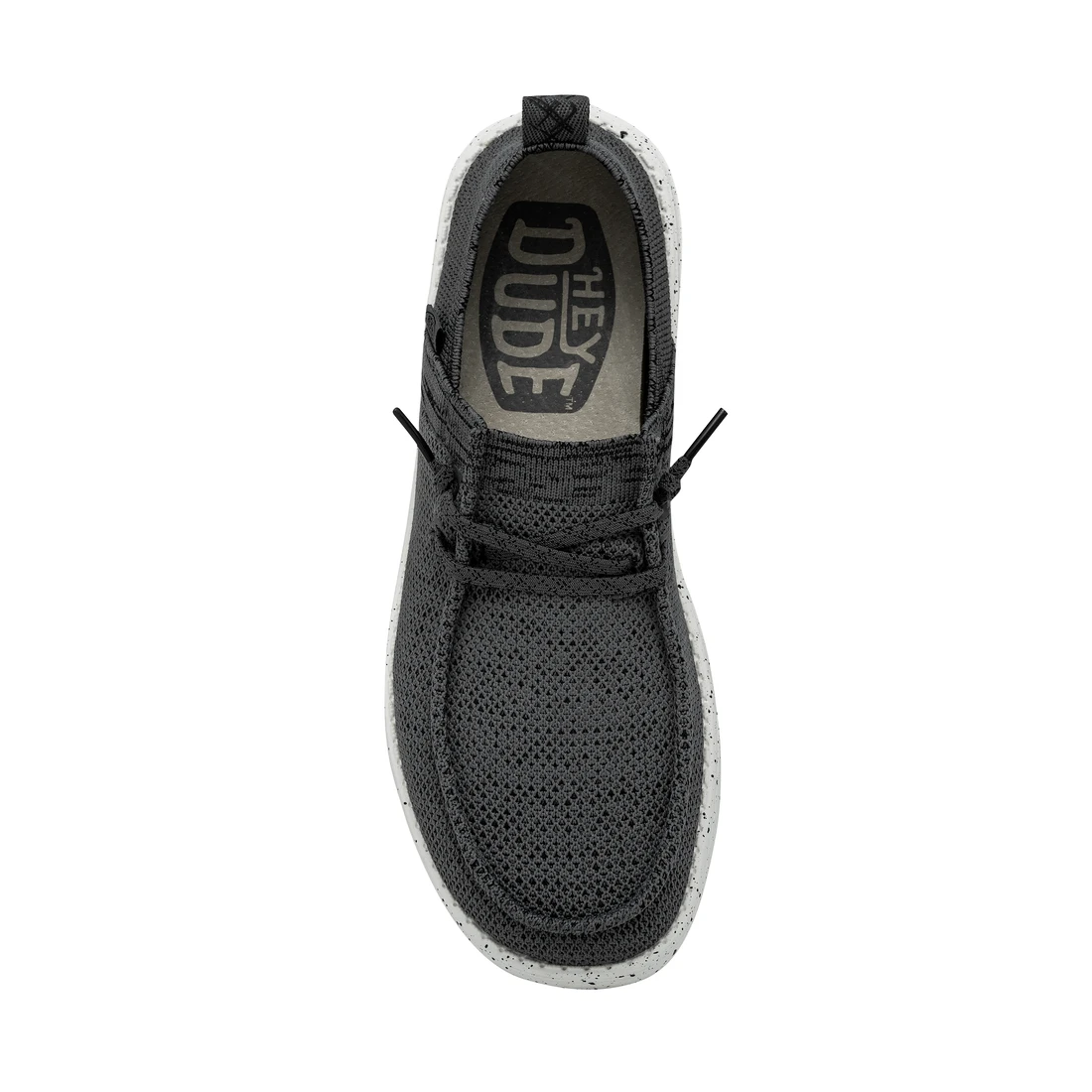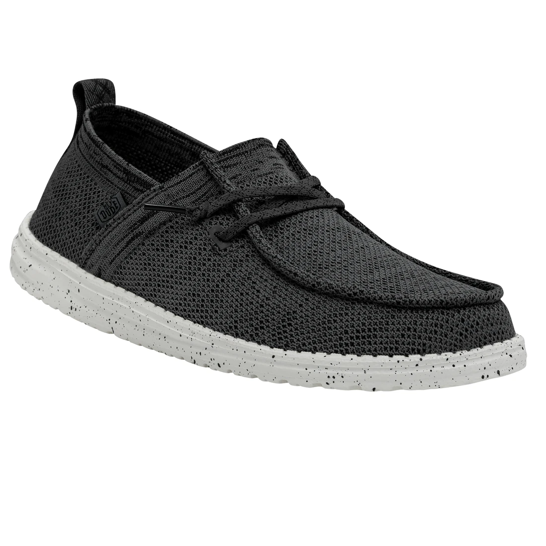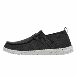 These comfortable Halo Dark Grey Hey Dudes will be a great add to any wardrobe. Sure to be a favorite pair you reach for all the time. These feature Hey Dudes easy-on system with cotton laces and an ultralight outsole for easy-wear. Breezy and lightweight.