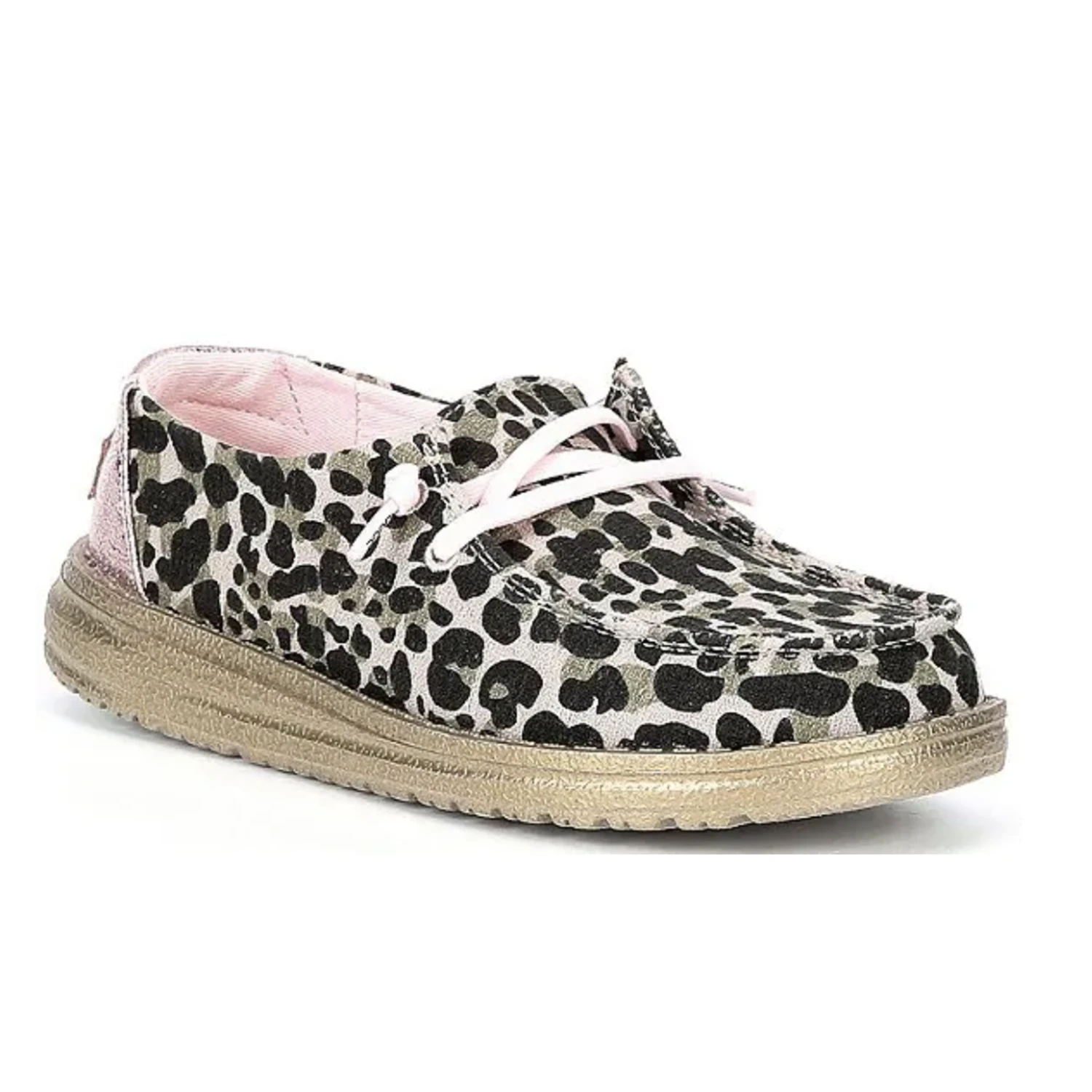 This Girl’s Leopard Hey Dude is like no other! We are absolutely in love with this adorable shoe. It has gold metallic detail with pink accents making it perfect for your little fashionista, all while keeping her comfy!