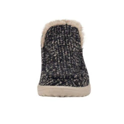 Slip into these warm comfortable contrasting tan moccasins for a day on the go. They are made of a soft wool blend with a faux fur lining and are very light weight. Keep your feet warm this winter with these adorable shoes.