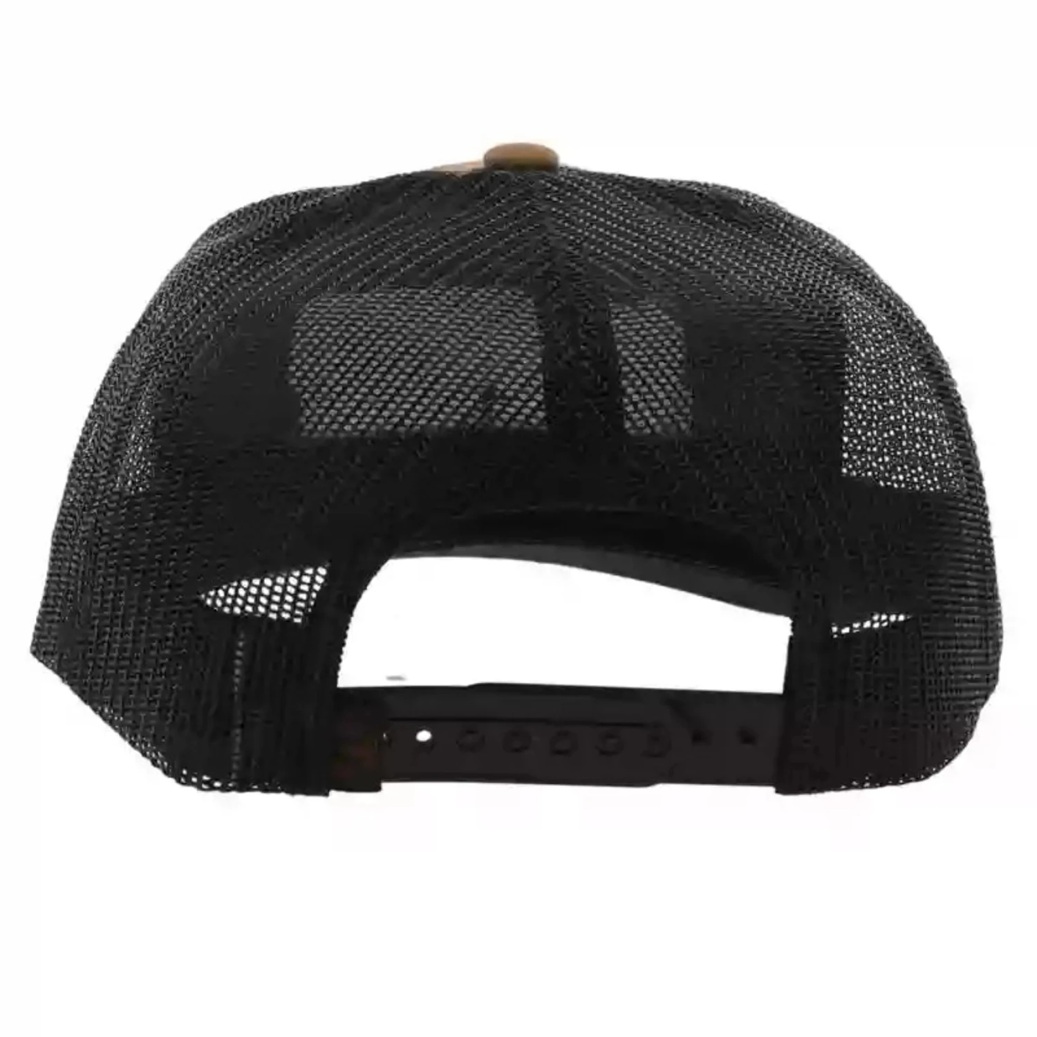 This dark tan and black 5-panel high profile cap is a classic! Hybrid bill and Cactus Ropes Texas patch. Hooey embroidered on left side. OSFA adjust backstrap and black mesh back.