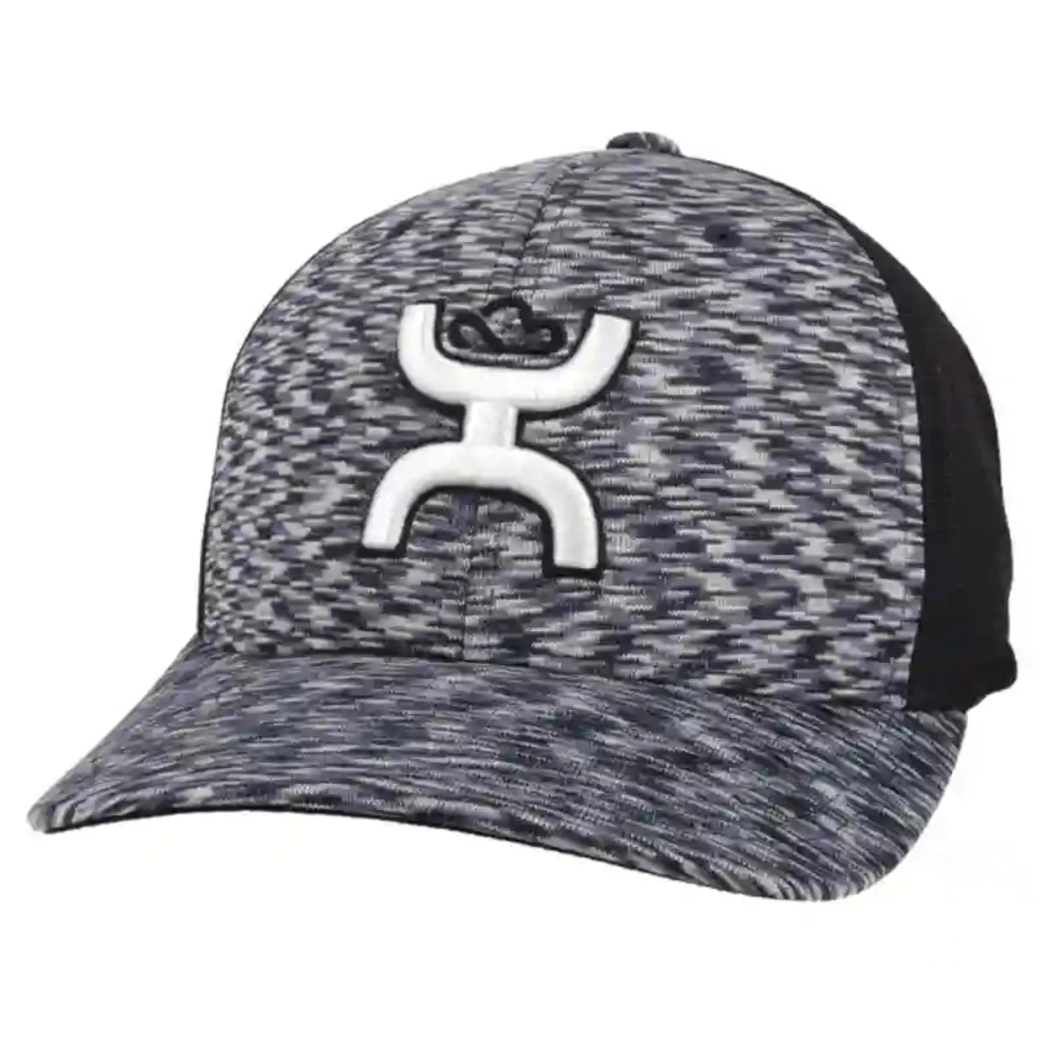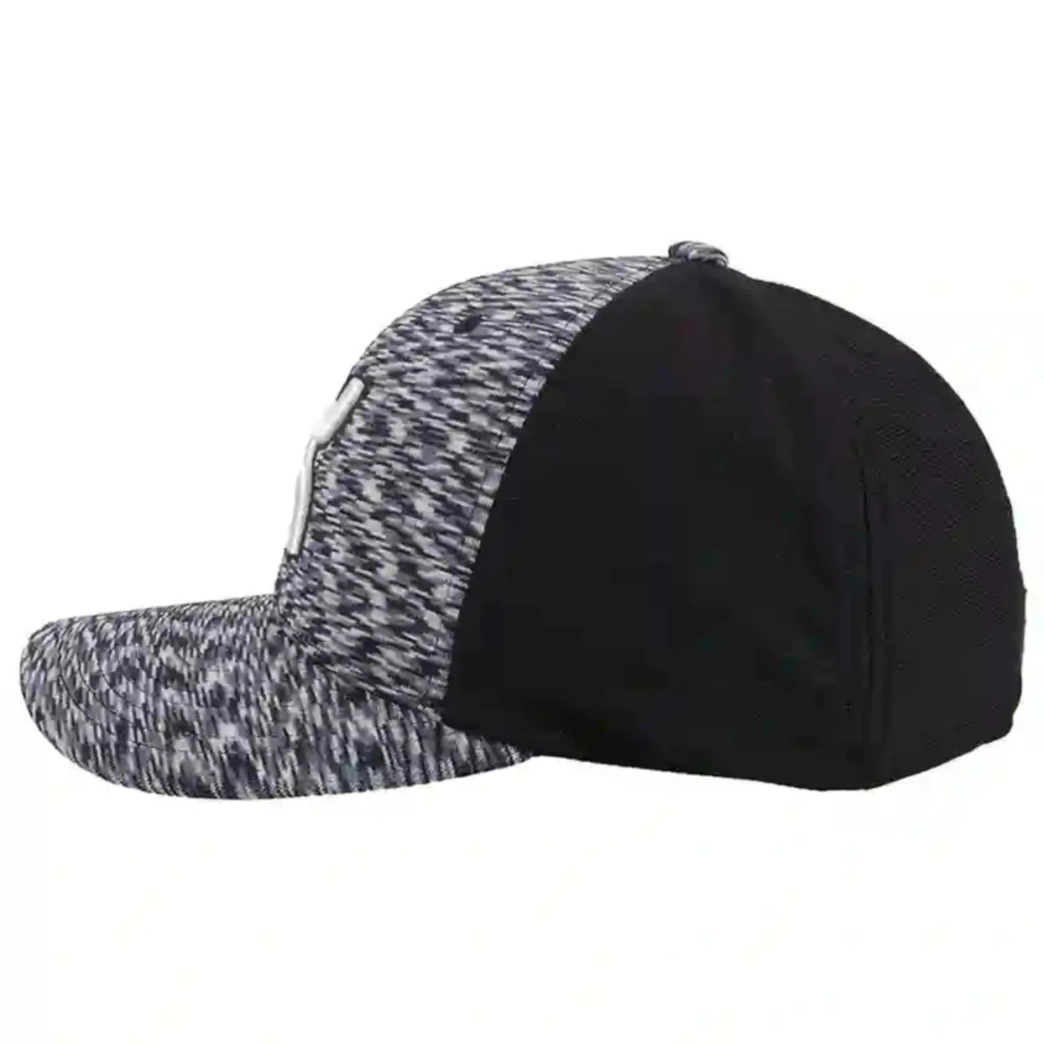 The unique fabric on the front of this cap is made up of a ziz-zag pattern of grey, navy and black with a solid black back. Mid-profile 5-panel comes with a curved bill. Internal FlexFit headband hugs your head for the perfect fit. Available in two sizes (S/M) (L/XL).