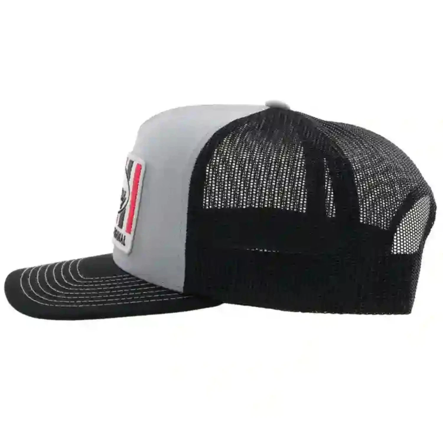 Hooey high profile grey 5-panel cap with black mesh back. OSFA snapback for size. Hybrid bill. The authentic Hooey Western Original patch really stands out on this cap for a great look!
