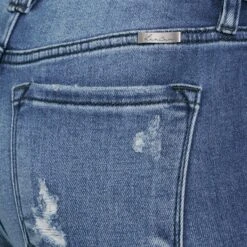 Kancans Clemont High Rise Flare Jeans are the perfect pair of trendy flare jeans with medium distress, medium fading, and whiskering. Comes in soft buttery stretch denim that melts to your every curve up to the knees where it flares out to the bottom. Features a classic 5 pocket style, front button closure, and zip fly.