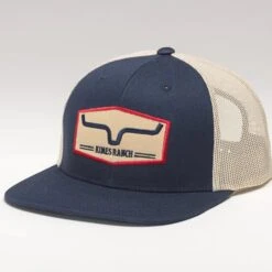 This Kimes Ranch cap is offered with a kool vintage looking patch! Kimes Ranch on a hayseed patch. Solid twill front and web mesh back for ventilation.