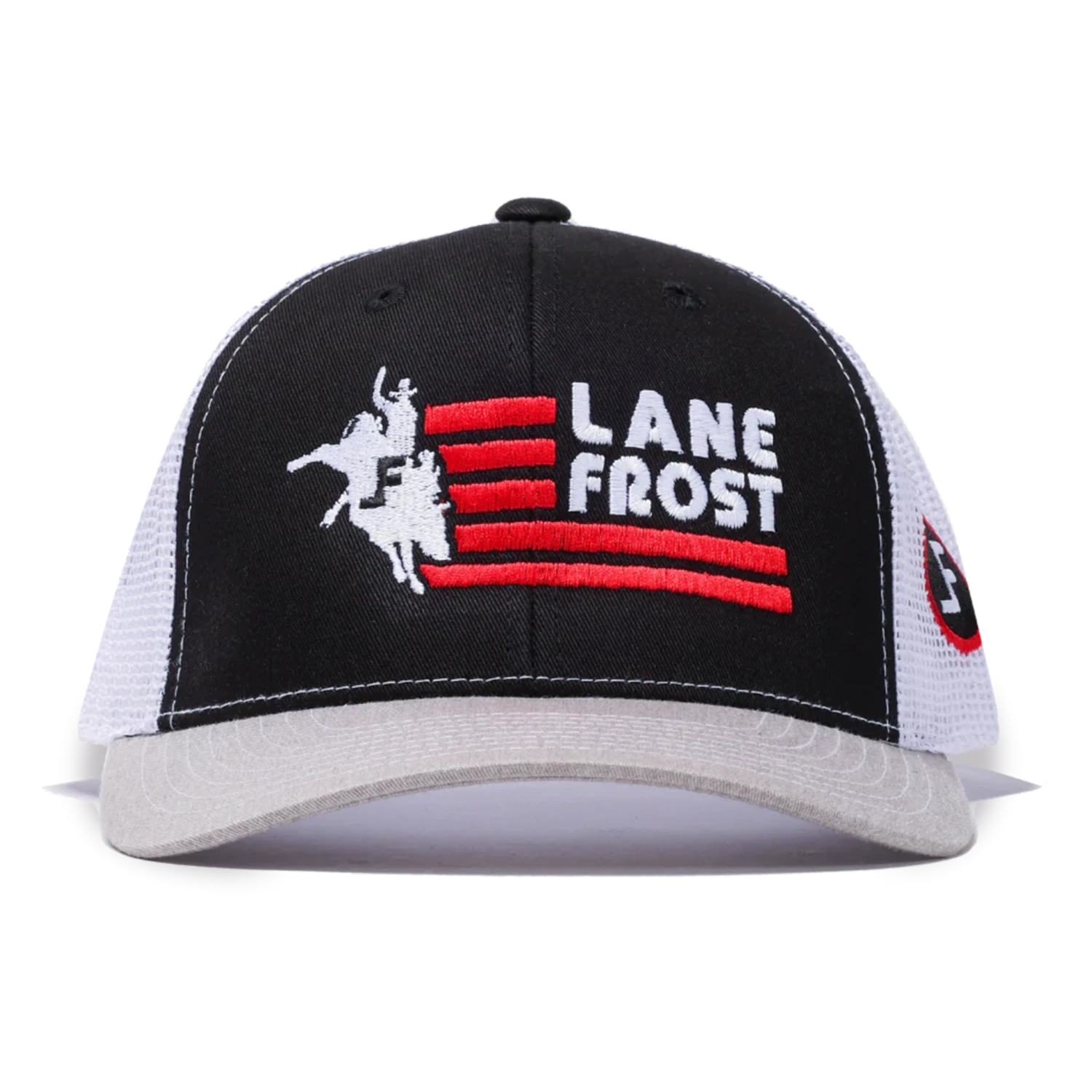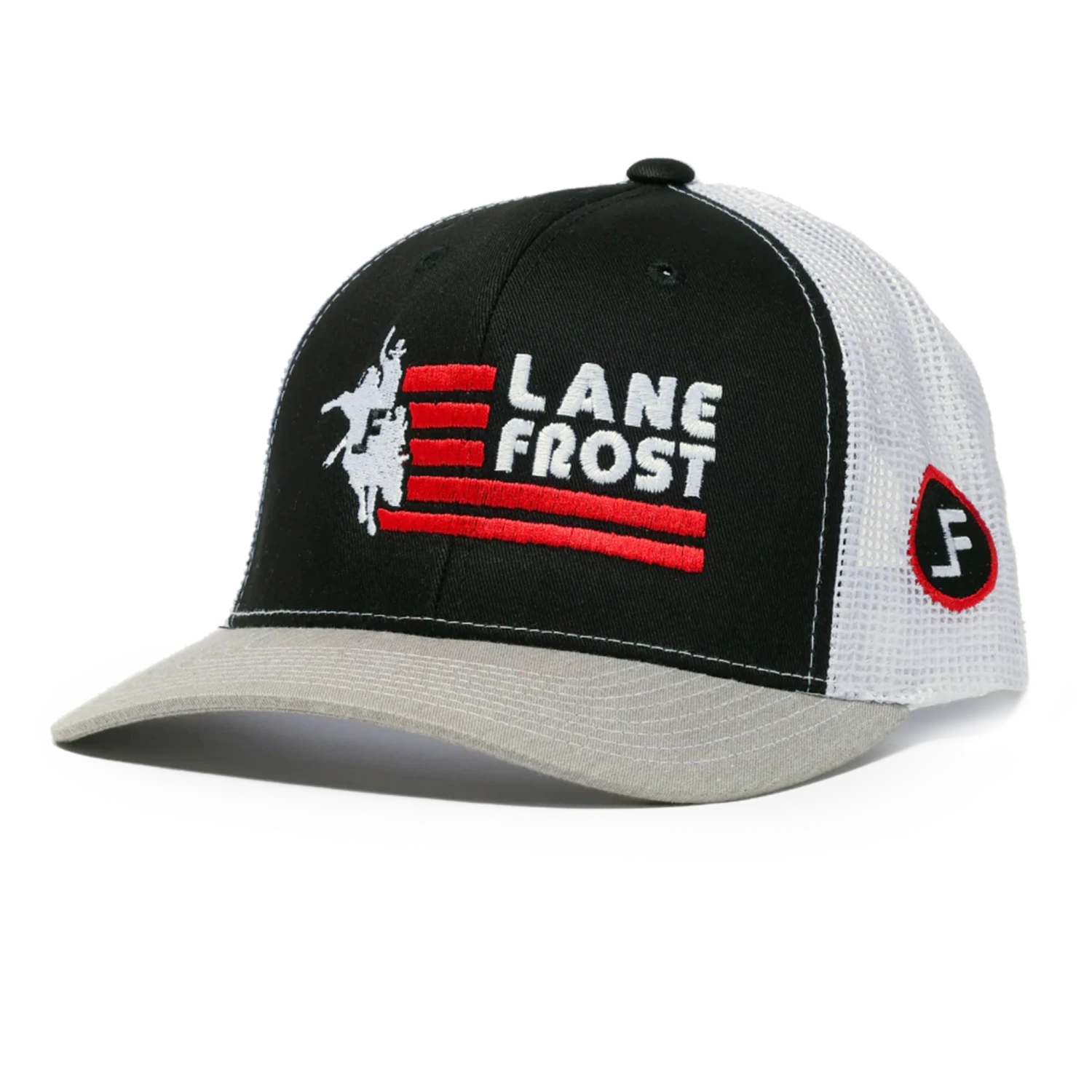 This classic themed Lane Frost cap is eye-catching with the Bull Rider graphic and color scheme to go with every outfit. This cap is made of high quality material and has an adjustable back for the perfect fit.