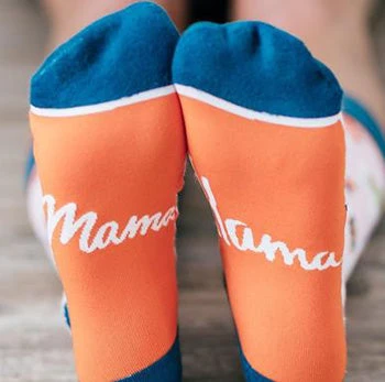 These mama lama’s socks have bright colors of pink, blue and orange. Features extra padding in the toes and heels to make your feet extra happy.