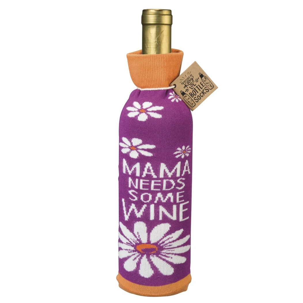 The Bottle Sock is a fun and unique gift idea! This “Mama Needs Some Wine” sock comes in a vibrant purple with fun floral details. These socks also make a fun decoration to an empty bottle.