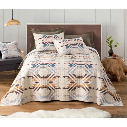 Your bedroom will be in high style with this beautiful White Sands King coverlet and sham set. The beautiful color pallet will complement any room.