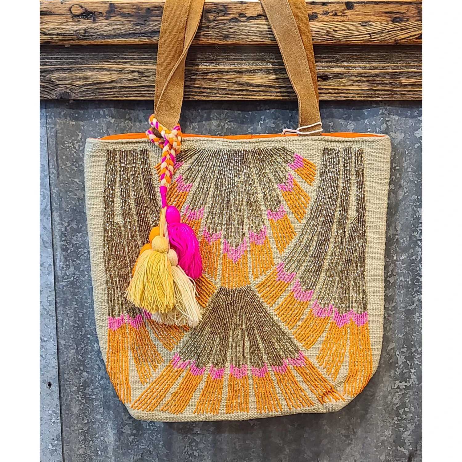 What a cute and fun little tote. We just love the rich, vibrant colors. The beaded detail makes this tote classy & fun all at the same time. Enjoy a fun day out, while having room for all of your essentials.