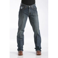 These men’s jeans from Rock & Roll Cowboy have a dark vintage wash to them! They a very simple ivory stitch pattern on the back pockets. Get cowboy ready with your new favorite pair of jeans!