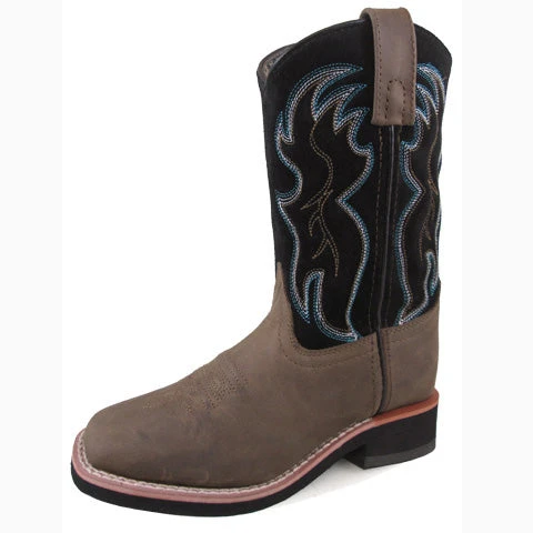 This child’s boot from Smoky Mountain features a brown leather toe and a black shaft with blue western stitching! The pull tabs on the top make it easy for kid’s to get their boots on!