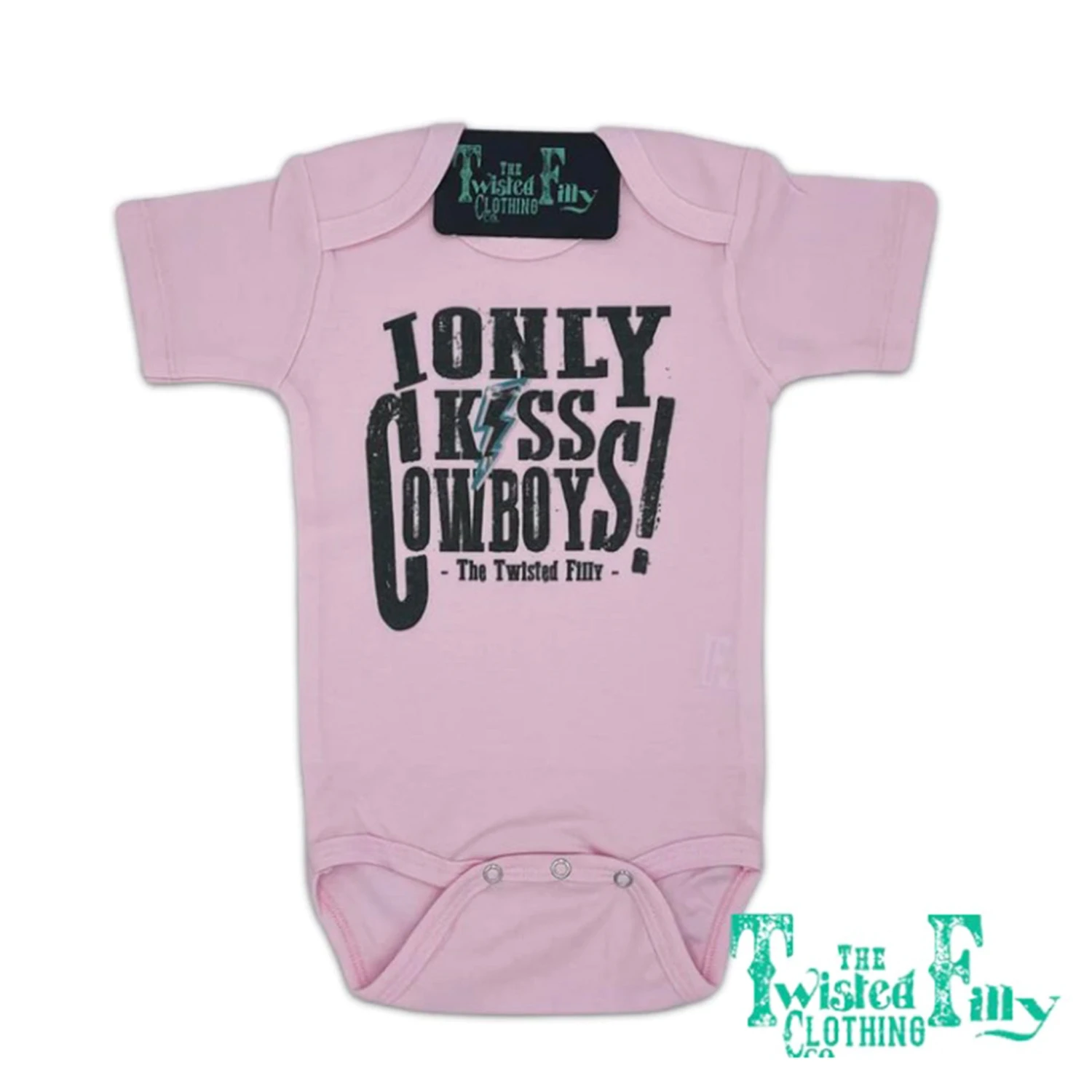 How cute is this pink “I Only Kiss Cowboys!” Onesie. Your little cow gal will be super cute in this alone or paired with your favorite shorts or jeans.