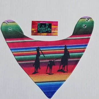 Keep your little one clean with this punchy looking bib! Bright striped serape with a black team roping accent on the front.