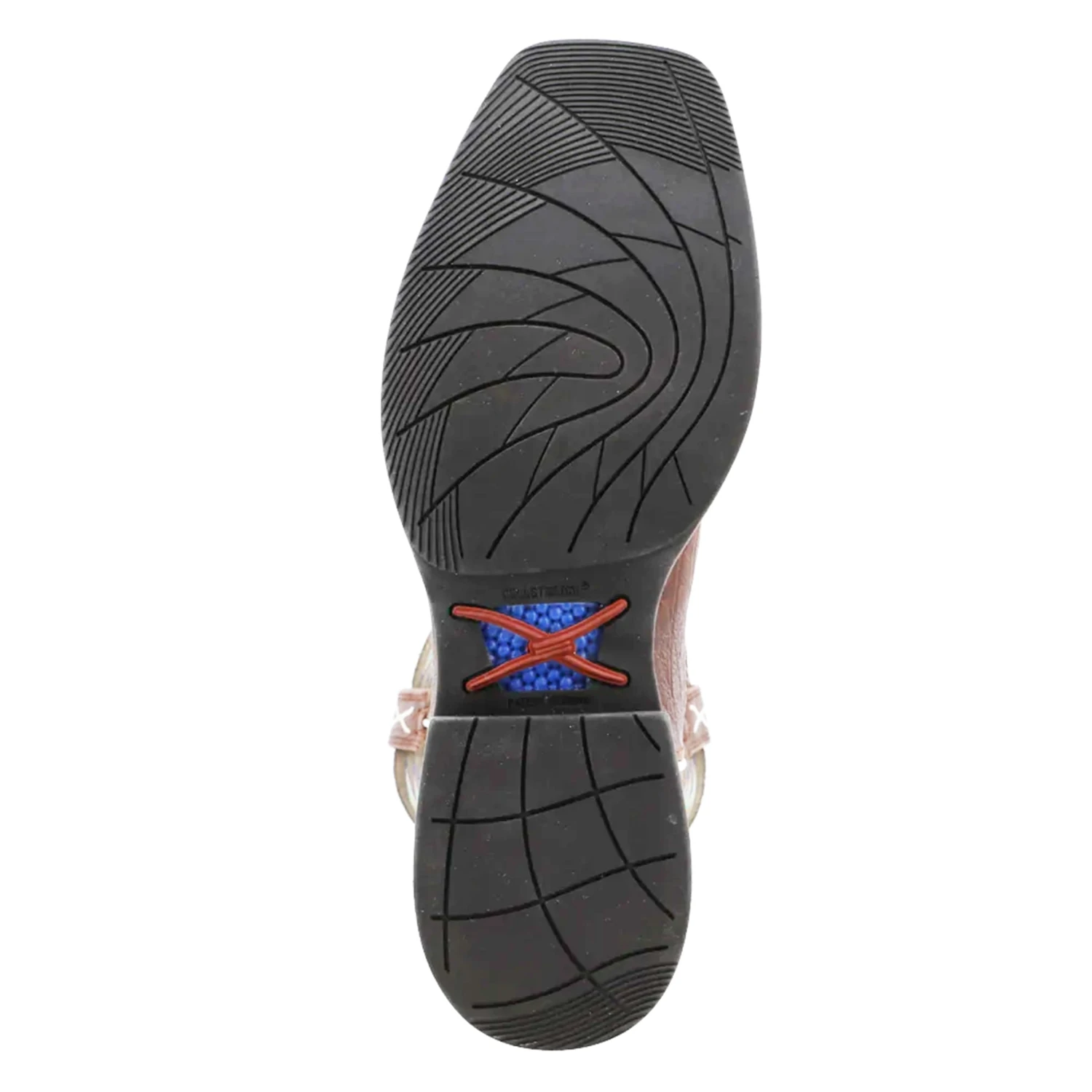 Twisted X Men’s Tech X™ 11″ WS Toe boots are crafted with full-grain elephant print leather and leather TWX™shaft. LeatherTWX™ material utilizes 80% recycled leather that would otherwise end up in landfills. Leather lining with taped interior seams. CellStretch® technology activates more than 100 individual pressure points in the heel and ball of the foot. Also, these boots combine a EVA midsole and a nylon/glass fiber shank for proper support and a durable rubber outsole and block heel with an integrated spur shelf.