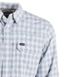 Whether worn on workdays or to special events, this blue and white plaid checkered long sleeve shirt by Wrangler is certain to upgrade any blue jeans or khakis in your closet.