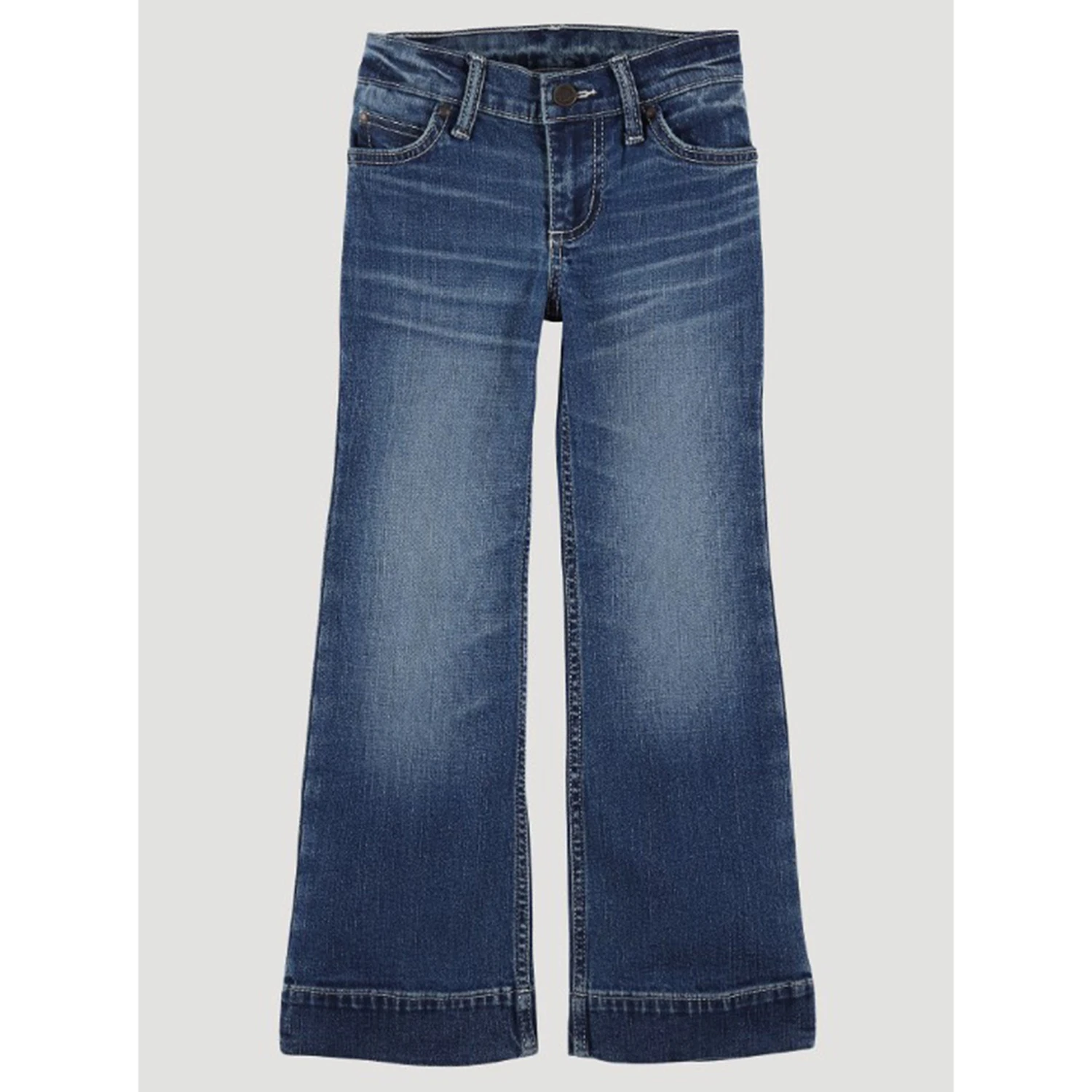 The Wrangler girls’ trouser features plenty of style in an everyday staple made to keep her comfortable all day long. The adjust-to-fit waistband is designed to suit her needs by helping her get her perfect fit, even as she grows. Hip pocket embroidery, classic five-pocket styling, and a trouser leg opening that’s slightly wider than a bootcut offer an authentic style she’ll want to wear every day of the week.