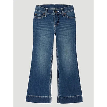 These super cute Wrangler Trouser Girls Jeans will be jeans she can play or ride her horse around all day in! They have an adjust-to-fit waistband, so will fit her as she grows. The bottom has a trouser style leg opening that is slightly wider than our bootcut.